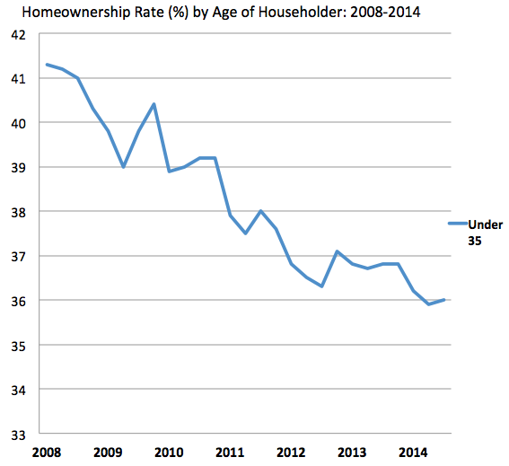 Let's begin with the youths, as we must. It is a truth universally acknowledged that a journalist in possession of a negative statistic must find a way to blame Millennials for it. In 2012, Jordan Weissmann and I observed that young people were turning away from homes and cars, the twin engines of the economy. Two years later, the homeownership rate is still declining for Americans under 35 (most of whom are Millennials, i.e. born between 1982 and 2000).