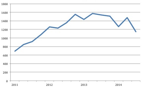 The last decade was a boom time for patent trolls. Their names and lawsuits made the news; This American Life dedicated two hour-long episodes to them. The number of defendants in patent troll lawsuits increased sixfold from 2003 through last year. But now the tides seem to be turning for them: After growing very rapidly since 2009, the number of lawsuits filed by "non-practicing entities" will be significantly lower this year compared to 2013. Although the level of litigation will still be at a historic high, is this indicative that they are finally being reigned in?