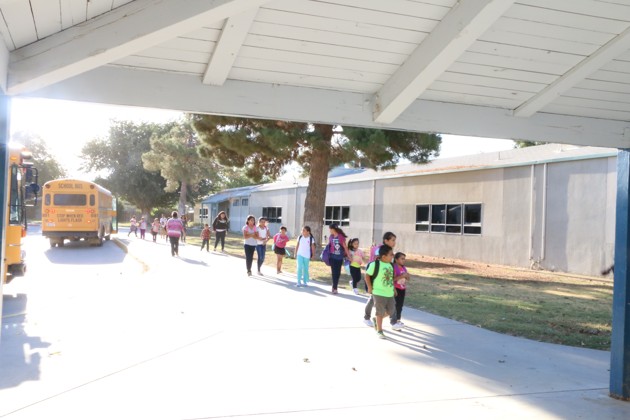 FIVE POINTS, Calif.—It’s 7:50 on a hot, dry August morning when the buses rumble past a barren field—normally filled with broccoli this time of year—and creak to a stop in front of a flat-topped school, dust blooming up from under their wheels.