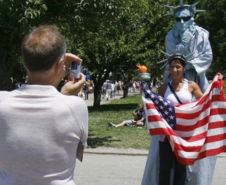 Tourists snap photos in New York City's Battery Park. (Reuters)