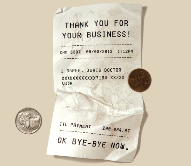 One can estimate how many of a school’s graduates got jobs with six-figure salaries—that is to say, jobs that make the accrual of a six-figure educational debt a reasonable investment—by adding together the number who were hired on a full-time, long-term basis by firms of more than 100 attorneys and the number who obtained federal judicial clerkships, which are often precursors to such jobs. At Columbia Law School—an exceptional school by any measure—this number amounted to 78 percent of the 2013 graduates, according to the school’s report to the ABA. Nationally, the figure for graduates of ABA-accredited schools is about 16 percent, but at low-ranked law schools that figure is sometimes radically lower.