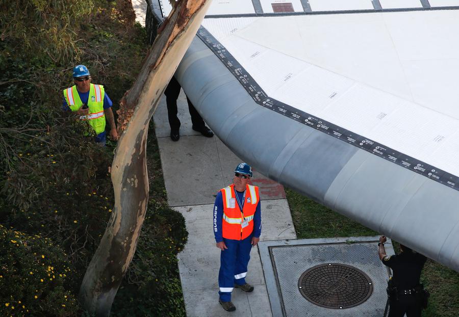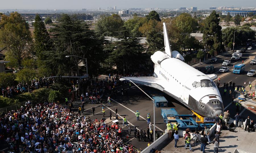 Read moreEndeavour stops in front of Randy's Donuts on Manchester Avenue while being moved from Los Angeles International Airport to its retirement home at the California Science Center in Exposition Park, on October 12, 2012. #