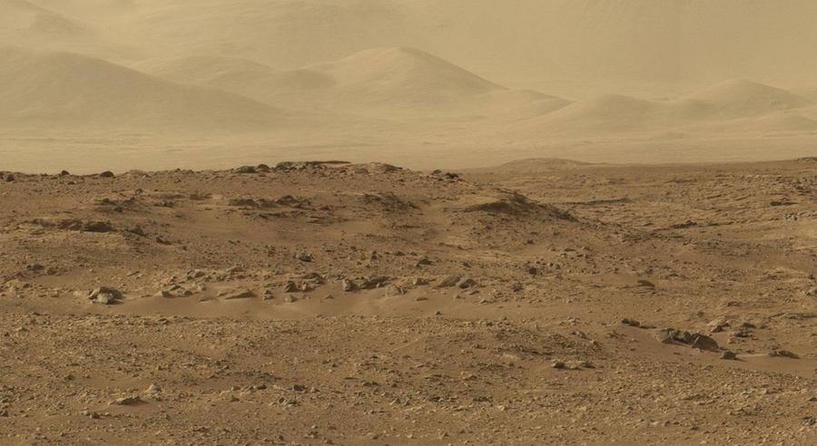 Read moreA panoramic view of distant Martian hills to the northeast, and rocky terrain in the foreground, seen by NASA's Curiosity rover on sol 50 of its journey. More of this scene here. #