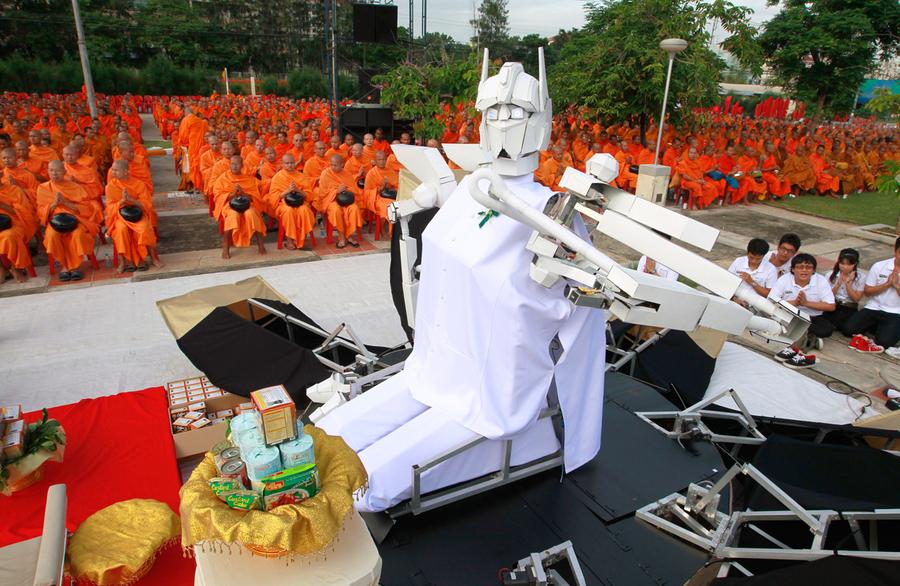 Read moreA robot sits before Buddhist monks, as they pray during a mass alms-offering ceremony at King Mongkut's Institute of Technology Ladkrabang in Bangkok, on June 19, 2012. The ceremony was held to mark the 2,600th anniversary of the enlightenment of Lord Buddha. #