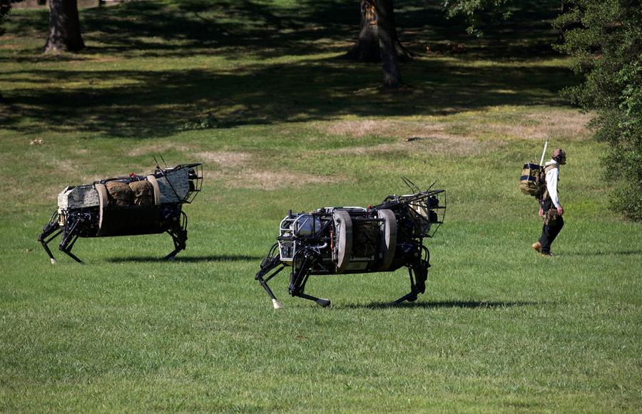 Read moreTwo robotic legged squad support system (LS3) machines by the Defense Advanced Research Project Agency follow a technician during a demonstration at Joint Base Myer-Henderson Hall, Virginia, on September 10, 2012. #