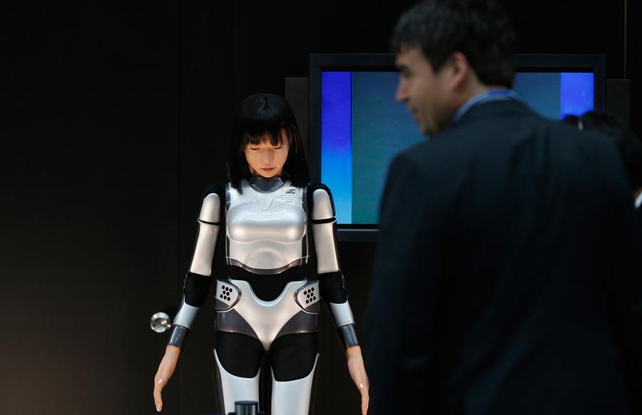 Read moreA man looks at the HRP-4C Miim humanoid robot at the venue of the Annual Meetings of the International Monetary Fund and the World Bank Group in Tokyo, on October 9, 2012. #