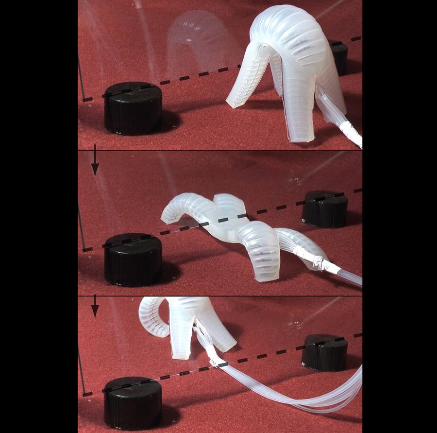 Read moreA soft-bodied robot navigates, from top to bottom, an obstacle course. Harvard University researchers built this flexible prototype robot that can crawl and move in a wavelike motion. Unlike rigid robots, soft robots can be used to squeeze into tight spaces. #