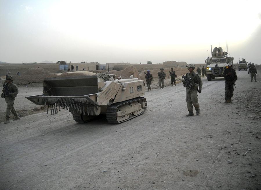 Read moreSoldiers with 3rd Brigade, 10th Mountain Division, travel alongside a Doking mine-clearance vehicle in Zharay District, Kandahar province, Afghanistan, during a recent patrol. The Doking is a remote-controlled, unmanned robotic vehicle, used for mine and route clearance. #