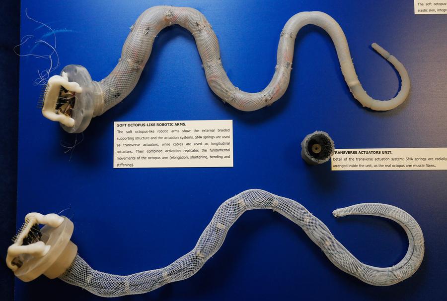 Read moreTwo Soft Octopus-like Robot arms, photographed at the Institute of Biorobotics of the Italian University Sant'Anna School in Pisa, on July 17, 2012. The Graduate School Sant'Anna of Pisa (SSSA), which includes six research institutes, has developed two prototype bionic arms, a robot capable of overcoming obstacles, another that recycles garbage, and one that has the form of an octopus. #
