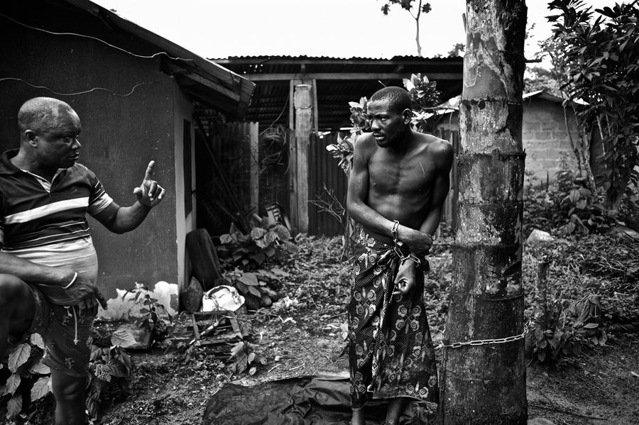 Read moreNative Doctor Lekwe Deezia claims to heal mental illness through the power of prayer and traditional herbal medicines. While receiving treatment, which can sometimes take months, his patients are chained to trees in his courtyard. They are not given shelter or protection from the elements. One patient tells the photographer they are sometimes beaten for no reason. The Niger Delta, Nigeria, October 2012. #