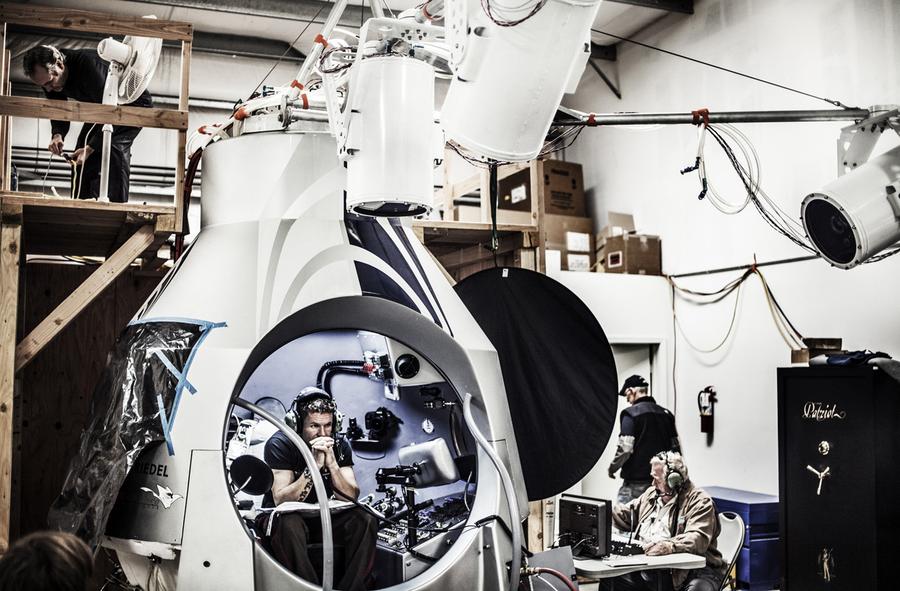 Read moreFelix Baumgartner contemplates in the stratospheric capsule during an egress training in Lancaster, California, on February 22, 2012. On October 14, 2012 Austrian skydiver Baumgartner broke the world record for balloon and free-fall height and became the first person to break the sound barrier without propulsion. After jumping from a helium balloon over 39 kilometers into the stratosphere his free fall reached a speed of 1,342 kilometers per hour. #