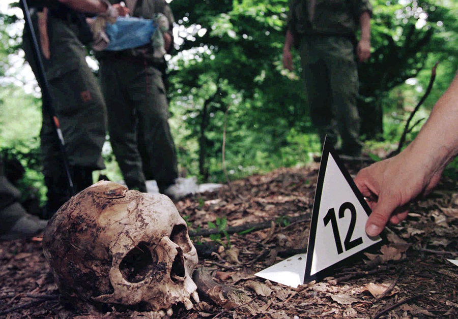Read moreA Finnish forensic expert places a number next to the skull of a Srebrenica victim found in the hills above the village of Kravica, 15 kilometers northwest of Srebrenica, on July 5, 1996. #