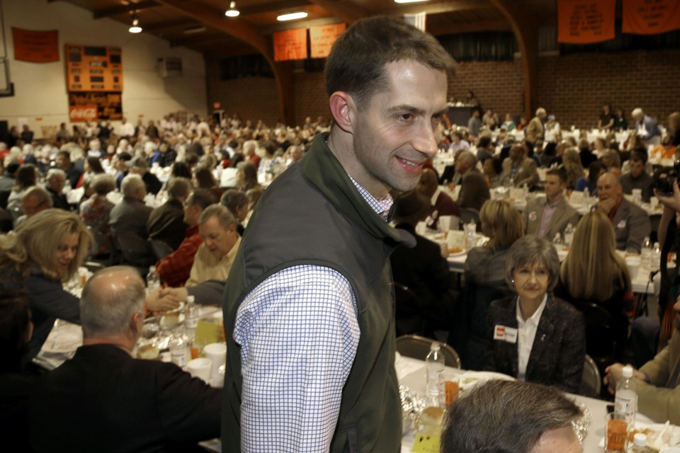 Cotton is a beanpole of a man, six foot five and rail-thin, with a long face, prominent nose, and eyes that tilt down at the corners. His affect is polite and polished; since a spate of articles earlier this year speculated that he suffered from a personability deficit, observers say he has become more diligent about smiling at people, asking them questions, and lingering over handshakes. (The effort can be a little forced: One voter complained to The Arkansas Times that Cotton had introduced himself to her twice at the same event.) His stump speech is a canned recitation of policy points, delivered in a near-monotone.