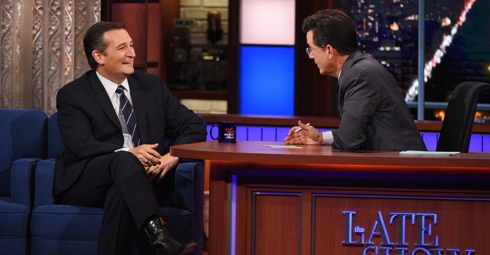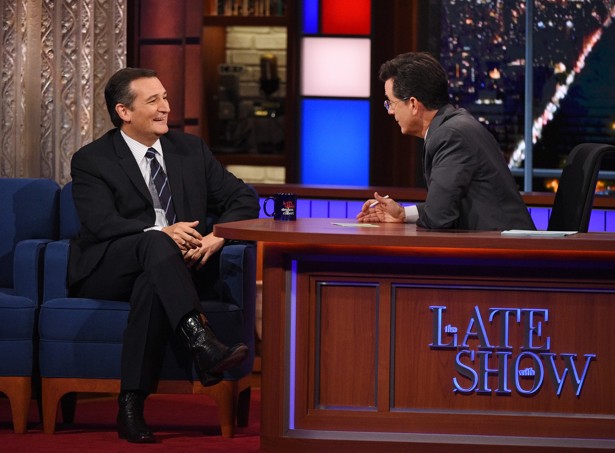 Cruz deserves credit for making the appearance. He’s a Republican who often seeks out safer audiences, whether on Fox or conservative talk radio. And it’s no longer a secret that Colbert is a much more challenging interviewer in his new show than any of his late-night colleagues. Donald Trump and Hillary Clinton each had far easier appearances with Jimmy Fallon last week. (Trump goes on Colbert’s show on Tuesday.) Carly Fiorina appeared on The Tonight Show opposite Cruz on Monday, and while Fallon did get her to respond to Ben Carson’s comments on Muslims and the presidency, it was a much lighter affair.