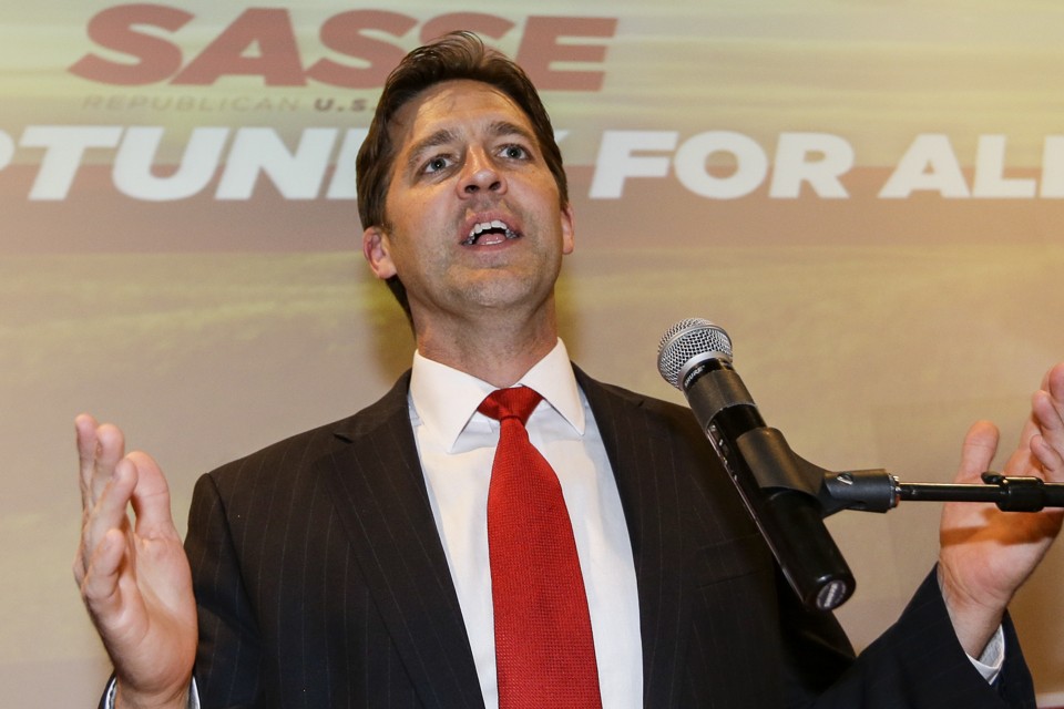 Senator Ben Sasse sat perched on a stool, decked out in a bright red Nebraska Cornhuskers’ tracksuit. Smile wide, brown hair swept back, the Nebraska conservative glanced back-and-forth between the camera and his gold iPhone as he read messages from his Twitter feed: