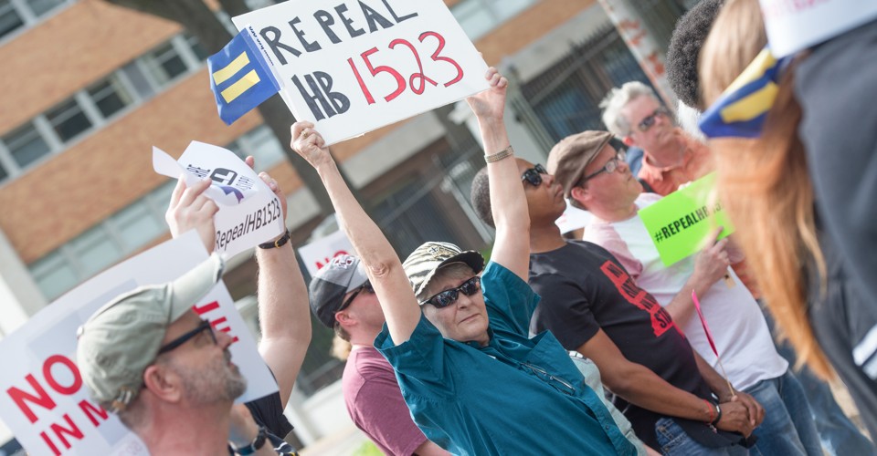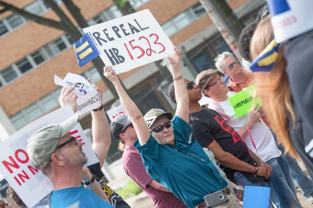 Bryant and supporters of the law say it protects the religious freedom of people who are opposed to gay marriage. When he signed the legislation in April, Bryant said H.B. 1523 “does not limit any constitutionally protected rights or actions of any citizen of this state under federal or state laws.” Opponents say the law allows for government-sanctioned discrimination against LGBT people.