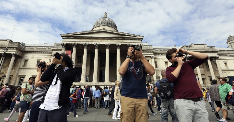 I live in New York City, a place full of people (tourists and non-tourists) taking photos. Every time I bike over the Brooklyn Bridge, as hundreds of tourists take selfies and panoramas, I’m in the background. As people take photos of each other—of Lake Louise, of the White House, of a Bloody Mary at brunch—other people end up in the frame. But how many? How many photographs out there feature you or me in them, in the background, beneath the Eiffel Tower or at the table next to the birthday party? Is it 100? 1,000? 5,000? 10,000? More?