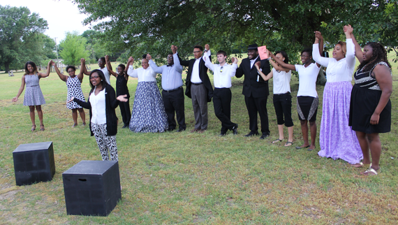 For the last few years MSMS history teacher Chuck Yarborough (above, center, talking with his students before tonight's performance) has organized 8th of May presentations in Columbus's historic Sandfield cemetery, where many of the area's prominent black residents were buried. This evening's program alternated songs by the Voices in Harmony choir from MSMS, with re-enactments of African-American political, religious, and business figures from the decades after the Civil War.