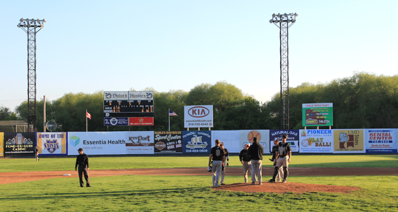 But for now, this is how things looked this evening at Wade Stadium in Duluth, Minnesota—an atmospheric WPA-era not-quite-minor-league baseball field that is home to the Duluth Huskies of the Northwoods League. This is a league for promising players who are still active on college rosters, and thus not eligible for pro contracts of any sort. They get expenses and—according to the lifelong Duluth families we sat among in the stadium—most of the players, who come from around the country, spend the summer boarding with volunteer host families in town. Some of the players join their Northwoods teams late because they've been busy in the College World Series and other postseason play.