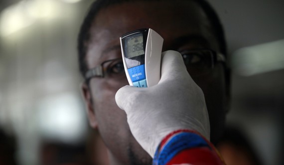 The Washington Post's Todd Frankel described having an infrared thermometer gun pointed at his head in the Freetown, Sierra Leone airport, along with hundreds of other passengers. In some countries, individuals whose temperatures seem high later undergo a blood test for the virus.