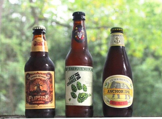 Koch talked to me at length about Jack McAuliffe, whose late-1970s New Albion brewery in Sonoma, California, was inspirational in demonstrating the possibilities of "interesting" beer but was too small-scale to survive as a business. Another of the pioneers was Fritz Maytag, who converted Anchor Brewing of San Francisco into an important microbrewer. In the photo at top that's Anchor's IPA on the right.