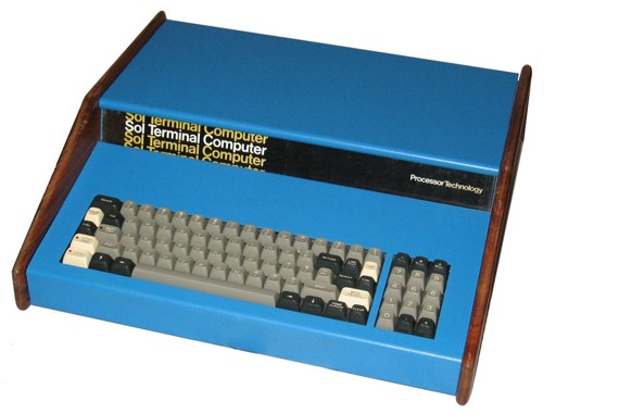 As it happened, the article was by me, and it concerned the way a single machine was changing my life. The machine in question was the one you see above: the Processor Technology SOL-20, by most reckonings the very first personal computer. The walnut siding on my model is still fairly lustrous, thanks to my taking it out of the basement for polishing every few years. If I could find a monitor to connect it to, and five-and-a-quarter-inch disk-drives (or even Radio Shack tape recorders) to load a program, I believe it would still work. Many articles and my book National Defense came out of this machine.