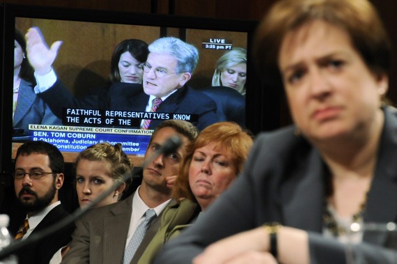 Kagan is the only member of the current court who had not served previously as a judge. Some others for whom the Supreme Court was their first judicial job: Earl Warren, Felix Frankfurter, Louis Brandeis. Caplan says that for this reason or some other, Elena Kagan has been skillful in writing opinions whose audience is the citizenry at large rather than a narrow specialist coterie (though of course she reckons with the specialist issues). Caplan says: