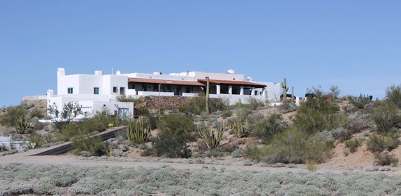 In tiny Ajo, Arizona, a low-slung white stucco pueblo-reminiscent house stands at the top of a hill, just across from where the massive open-pit New Cornelia Copper Mine was heading toward full-tilt production almost a century ago. The house, prominent in a quiet way, commands a view of Ajo and the desert below. Even from the outside, you can tell that the house was built to resist the sun and the heat of the summer months. If you turn west toward higher territory, you see a bright white cross at the top of another hill.