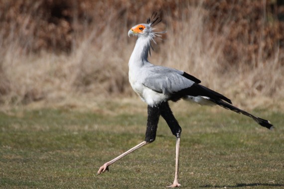 The bird’s hunting technique is simple: Find prey, flush it out, and stamp the living crap out of it. It does so with improbably long legs, which look like a crane's legs glommed onto an eagle’s body. With unerring accuracy, it brings these down onto rodents, lizards, small birds, and snakes—typically on the head.