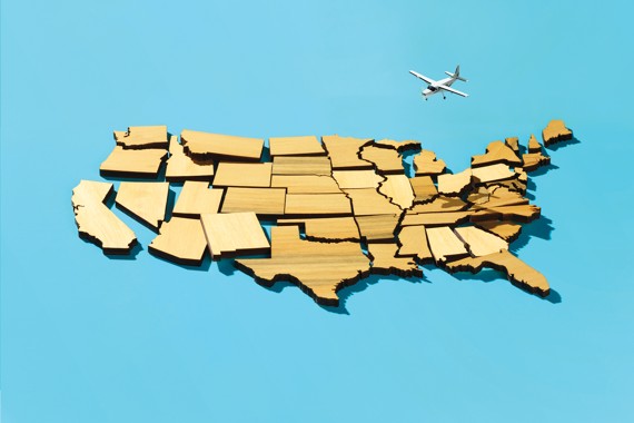 There is a high-toned tradition of road trips as a means of “discovering” America, from Lewis and Clark and Tocqueville through John Dos Passos, John Steinbeck, and William Least Heat Moon (whose Blue Highways made its debut in these pages). Apart from other obvious points of contrast, our project was different in that rather than going by car (or wagon, or pirogue), we’ve gone from city to city in our family’s small single-engine propeller airplane, a Cirrus SR22. This was a decision made for convenience, for beauty, and for edification.