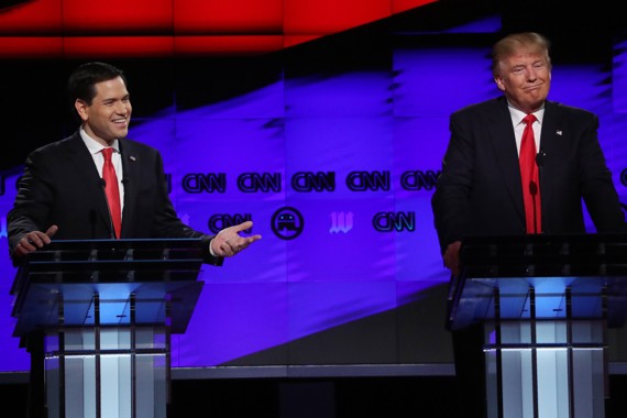 With Trump, you never have the sense that it’s a one-or-the-other binary choice. Instead he is working a dial, which he can turn to whatever setting he wants. You’re looking for George Wallace-style demagogic hate-anger at a rally? You got it! You want someone who can chat affably with Jimmy Fallon on the Tonight show or seem to enjoy the joke as host on SNL? Coming right up. You have one debate where Tump looks right at an incumbent U.S. Senator and repeatedly, mockingly insults him as “Little Marco.”And then another a week later with friendly sounding, respectful references.