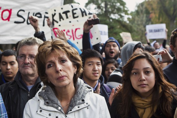 Calls for her resignation persist in part because of her record at Davis. Katehi began to lose the confidence of students in 2011, when a group of peaceful undergraduates, assembled lawfully on a campus quad, was brutally pepper-sprayed at point-blank range by a UC police officer. “I take full responsibility for the events,” she said back then, amid other calls for her resignation. “I really feel horrible for what happened,” she told a large crowd that gathered days later at a campus rally, adding “I don’t want to be the chancellor of the university that we had on Friday.”