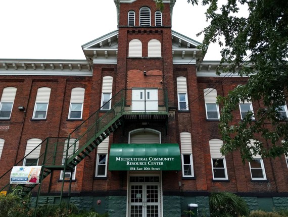I recently visited one of these support groups, the contracted Refugee Social Provider, the Multicultural Community Resource Center (MCRC). It is located east of State Street, which cuts through the middle of Erie and still signals a socioeconomic boundary. Most of Erie’s less affluent population lives on the east side. The MCRC occupies the Old Penn Schoolhouse and its next-door annex at the former 10th St. United Methodist Church. The MCRC began as the Hispanic American Council in 1975, broadening its scope nearly 20 years ago to include refugees outside the Hispanic community. Their mission is to help refugees and immigrants (some of whom are transitory migrant laborers) in just about every way, from social, civic, educational to economic life. The MCRC also raises the profile of the newly-arrived with the more established citizens of Erie. MCRC is funded by as many as two dozen organizations, from government and civic groups to corporations, nonprofits, and private benefactors.