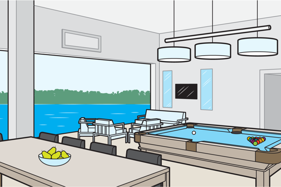 In some regards, the plans for Trident Lakes do resemble those for a resort. Amenities will include a hotel, an athletic center, a golf course, and polo fields. The community is slated to have 600 condominiums, ranging in price from $500,000 to $1.5 million, each with a waterfront view 6 (to which end, three lakes and 10 beaches will be carved out of farmland). Other features are more unusual: 90 percent of each unit will be underground, armed security personnel will guard a wall surrounding the community, and there will be helipads for coming and going.