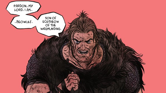 What’s it about, this running pop-cultural engagement with the old poem? To begin with, there’s the action: kinetic, enthralling fight scenes that go on for pages, pitting a superheroic human against a shape-shifting, ever-regenerating principle of destruction. Beowulf, mighty warrior of the Geats, hearing that some neighboring Danes are being terrorized by a misshapen antiman called Grendel, crews a ship with up-for-it countrymen and sails to the rescue. In the great hall Heorot—built for feasts, now stalked by Grendel—a bare-handed Beowulf fights the monster, rips his arm off, and nails it over the door of the hall. Then he fights Grendel’s mother, a water monster, diving into her demonic pond (where Grendel crawled to die) and running her through with a sword, which promptly melts. And then, back in Geatland 50 years later, Beowulf faces a dragon. Billows of Game of Thrones–esque dragon breath, heroic paroxysms. Beowulf kills the dragon, and the dragon kills Beowulf. The end.