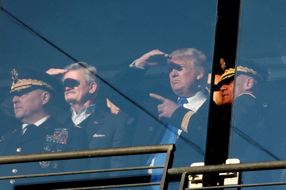 And even if North Korea hasn’t yet crossed Trump’s red line on obtaining a nuclear-tipped long-range missile, it will almost certainly violate the latest red line that the president has drawn. We’re talking about a North Korean government that, only yesterday, threatened to exact “thousands-fold” revenge on the United States for organizing sanctions against Pyongyang at the UN Security Council. We’re talking about a North Korean government that over the years has issued a steady volley of anti-American threats laden with the kind of bristling, bellicose language employed by Trump on Tuesday. This is the government that, long before it was testing ICBMs, was vowing to “annihilate the U.S. imperialist aggressors,” to bomb Austin, Hawaii, Washington, and Los Angeles, to attack the “boiled pumpkin” that is the United States of America. Under Kim Jong Un, North Korea has frenetically carried out all manner of non-verbal provocations as well, from menacing military parades to nuclear tests to ballistic-missile launches. Trump did not specify on Tuesday what variety of North Korean threat he had in mind.