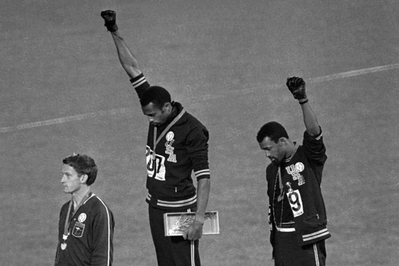 - In 1968, American track stars Tommie Smith and John Carlos won the gold and bronze medals (respectively) in the 200-meter race at the Olympics in Mexico City. When the awards ceremony came, they performed the original version of what now would be considered a Kaepernick protest. As “The Star-Spangled Banner” played they bowed their heads; they raised their black-gloved fists in what was then known as a “Black Power” protest salute; and they displayed on their USA team jackets a prominent badge from an anti-racist organization. The silver medalist, Peter Norman of Australia, did not raise his fist but displayed the badge and later made clear his support for the protest.