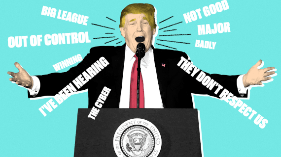 As soon as Donald Trump announced his presidential candidacy, people noted a few of his linguistic quirks, such as the extended, supervowel pronunciation of huge and the references to himself in the third person. But beyond those, the version of English he speaks amounts to its own patois, with a special vocabulary and syntax and psychological substrate. A year ago Alec Baldwin and I decided to write a parody memoir, You Can’t Spell America Without Me: The Really Tremendous Inside Story of My Fantastic First Year as President, entirely in that dialect. To prepare, I spent weeks studying transcripts of his interviews and press conferences and depositions, as well as thousands of his tweets, to assemble a lexicon I could consult as we wrote. This is an abridged version of that Trump style guide.