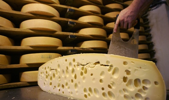 Cheese’s fabulousness all begins with a particular protein: casein. Kantha Shelke, food scientist and one of the heads of the company Corvus Blue, a food science and research firm, told Gastropod that “we’ve got a few wonder proteins in nature, and casein is definitely one of them.” One particular type of casein has special little tails that hold onto water, which is the glue that stops milk from splitting and makes it a liquid. But if you add the enzyme chymosin to milk, it cuts the tails off those casein molecules, allowing the protein to all clump together in curds. This is the beginning of milk’s journey to become cheese, a process we saw in person at the Istituto Lazzaro Spallanzani, an agricultural and cheese-making school near Bologna in Italy.