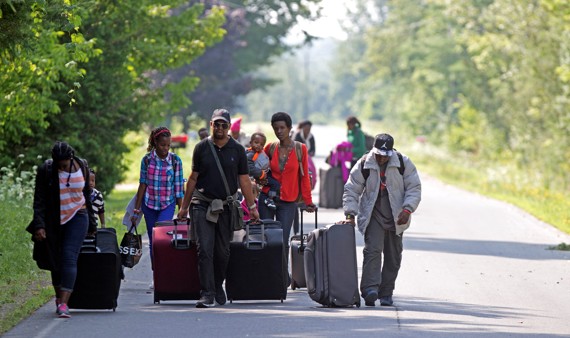 Canada has built a reputation for warmly embracing Syrians. But most of the newcomers are from elsewhere. At first, it was mostly Haitians in the U.S. who made the journey. Some said they were spooked by Trump’s anti-immigrant rhetoric and worried about losing the temporary residence status they’d been given in the U.S. following the 2010 earthquake in their native country. In recent months, Nigerians have become the most frequent border crossers. Many get visitor visas to come to the U.S., then take a bus or taxi to upstate New York, where they walk north into Quebec—straight into the arms of Canadian border guards waiting to arrest them.