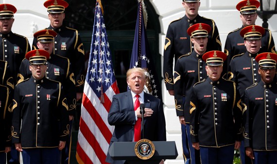 On the day that the Philadelphia Eagles were supposed to visit the White House after having won the Super Bowl, a long-held tradition, President Donald Trump held a “Celebration of America” on the South Lawn. Instead of meeting Eagles players, the president praised his economy, mouthed some of “God Bless America,” and promoted standing for the national anthem.