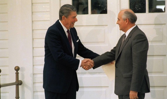 These meetings didn’t bear fruit, in part because Soviet leaders—Brezhnev, Yuri Andropov, and Konstantin Chernenko—in Reagan’s words, “kept dying on me.” But in March 1985, within hours of learning that Mikhail Gorbachev would replace Chernenko, Reagan invited him to meet without preconditions. Reagan also instructed Vice President George H.W. Bush—who was in Moscow for Chernenko’s funeral—to tell Gorbachev that America and the Soviet Union “should seek to eliminate nuclear weapons from the face of the earth.” That November, despite calls from conservatives to cancel the summit after Soviet troops killed a U.S. soldier in East Germany, Reagan and Gorbachev met. Their initial discussion, which was supposed to last 15 minutes, lasted five hours. At one point, Reagan whispered to Gorbachev, “I bet the hardliners in both our countries are bleeding when we shake hands.”
