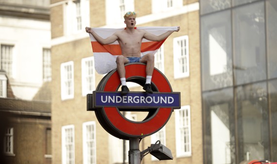 To other flashier, more trophy-laden nations, simply reaching the semifinal stage wouldn’t be grounds for celebration. In England, the team’s Sweden victory prompted chaotic, rowdy frenzy all over the country. In Stratford, West London, supporters celebrated by invading the local IKEA. In Doncaster, a woman renewing her wedding vows structured her celebratory breakfast to coincide with the game. In Clapham Junction, an area of south London, a particularly rowdy fan led crowds in chants before leaping onto (and falling through) the roof of a bus stop. Near London Bridge, a man in a Southgate-esque waistcoat was among revelers taking victory poses on top of a smashed-up ambulance, and in Folkestone, a car with two fans riding on the hood ploughed through a red light, narrowly missing pedestrians.