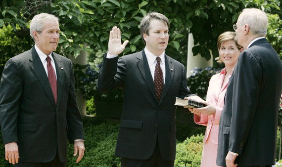 After working on Bush’s legal team during the 2000 election, Kavanaugh joined the White House, where he worked first in the White House counsel’s office and then as the staff secretary, a crucial gatekeeper role. In 2003, Bush nominated him to the powerful D.C. Circuit court, but his nomination stalled. Three years later, Kavanaugh got another chance. During his confirmation hearings, Democratic Senators Patrick Leahy and Richard Durbin quizzed Kavanaugh on what he knew about administration decisions regarding the war on terror, and especially on the treatment of detainees. Senators were feeling burned, because they had in 2003 confirmed Jay Bybee, a former Bush Justice Department official, to a lifetime judgeship only to learn later of his role in the authorship of the so-called torture memos justifying coercive interrogation of individuals in U.S. custody.
