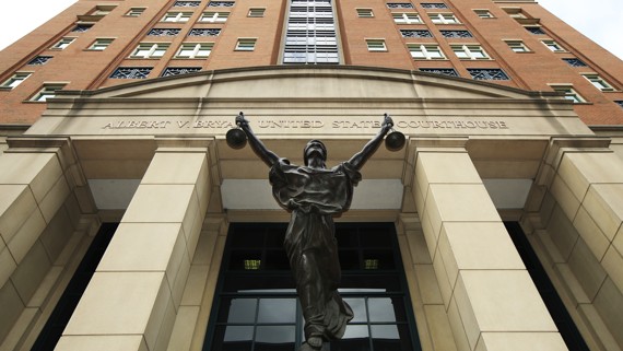 “I’m not patient,” the judge said at another point. It’s an apt description—not only of the judge himself, but of the court on which he sits. Zwerling reminded me that outside the main entrance to the Albert V. Bryan Courthouse—one of four in the Eastern District—there’s a statue of Lady Justice. She is not standing, but in a full run. And engraved on the pedestal beneath is the court’s unofficial motto: “Justice delayed, justice denied.”