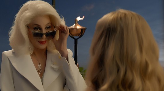 Yet the bumbling, humane air of Mamma Mia! Here We Go Again met with a funny—and not unwelcome—disruption in the form of Cher. Presumably to amp the star power for the sequel (offsetting the fact that, spoiler alert, Streep basically sat the film out) the 72-year-old Goddess of Pop was cast to play Sheridan’s mother, Ruby. She didn’t arrive on screen until the last act, and when she did, it brought a new vibe as Ruby, a pop star herself, touched down on the film’s idyllic Greek isle in a helicopter. The camera regarded her with worshipful stiffness, framing her as if she were in a perfume ad, with fireworks in the background making up for a lack of human movement. Almost impossibly, Cher’s scenes made the rest of this hyper-artificial film feel genuine and unrehearsed.