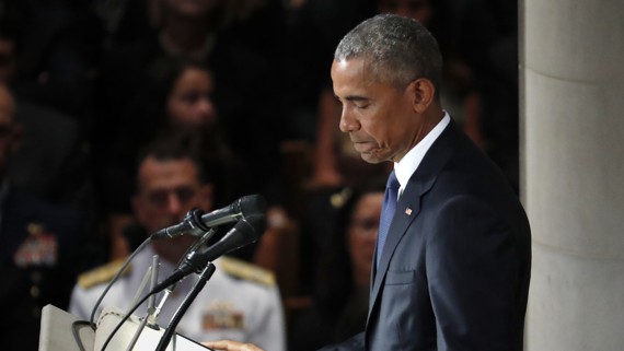 We didn’t advertise it, but every so often over the course of my presidency, John would come over to the White House and we’d just sit and talk in the Oval Office, just the two of us. And we’d talk about policy and we’d talk about family and we’d talk about the state of our politics. And our disagreements didn’t go away during these private conversations. Those were real and they were often deep. But we enjoyed the time we shared away from the bright lights. And we laughed with each other. And we learned from each other. And we never doubted the other man’s sincerity or the other man’s patriotism, or that when all was said and done we were on the same team. We never doubted we were on the same team. For all of our differences, we shared a fidelity to the ideals for which generations of Americans have marched and fought and sacrificed and given their lives. We considered our political battles a privilege, an opportunity to serve as stewards of those ideals here at home and to do our best to advance them around the world. We saw this country as a place where anything is possible, and citizenship is an obligation to ensure it forever remains that way.