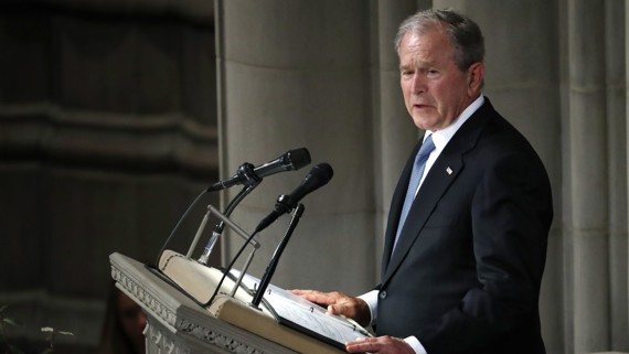On Saturday morning, former President George W. Bush delivered a tribute to his erstwhile campaign rival John McCain. The two men ran against each other in the Republican presidential primary in 2000, though McCain ultimately lost to Bush. Earlier this year, McCain asked Bush and former President Barack Obama, who ended McCain’s second bid for the presidency, to deliver eulogies at his memorial service.