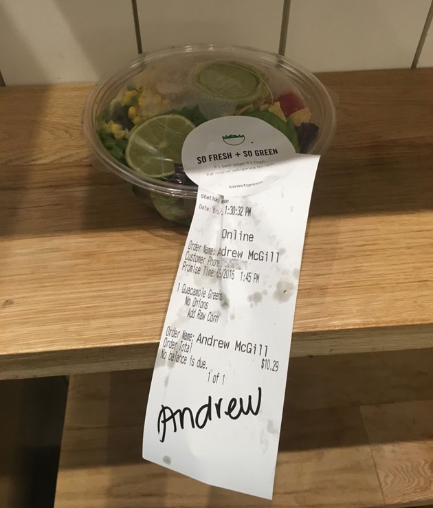 Sweetgreen is a salad chain that got its start in Washington, D.C., and specializes in delicious green stuff. It’s a go-to lunch choice for me, with a restaurant conveniently located near the The Atlantic’s Watergate offices (and thankfully, a few steps closer than the burger-and-milkshake joint). But I’m not the only one who loves it. Around lunchtime, the place gets mobbed. It’s at the point where you’re surprised when the line isn’t already out the door: