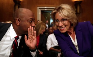 The Michigan billionaire’s confirmation hearing was heavy on partisanship and light on substance.